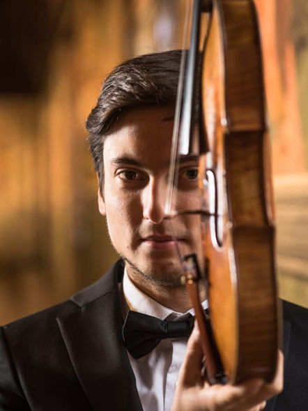 He plays the exquisite Santo Serafino “Lachmann” (Venice, 1740), previously performed by the great violinist Franco Gulli and kindly entrusted by Fondazione Pro Canale in Milan. He is the official promoter of Dogal strings, a Venetian artisan brand handed down through generations.